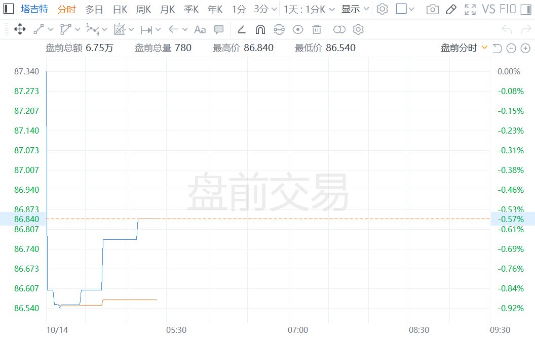 大型零售商塔吉特(TGT.US)盘前跌0.92%至86.54美元。消息面上,D.A. Davidson将塔吉特的目标价从115美元下调至108美元,重申“买入” 评级。首席执行官交接后领导层的不确定性带来了战略和执行风险,这些风险超过了近期的运营改善。(格隆汇)