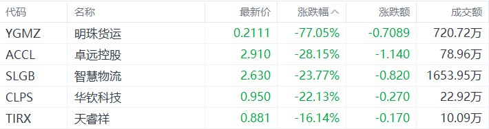 美股异动丨明珠货运跌77.05%,为跌幅最大的中概股