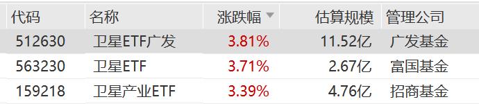 盘面上,商业航天概念股航天智装、中国卫星封板,卫星ETF广发、卫星ETF、卫星产业ETF涨超3.3%。
