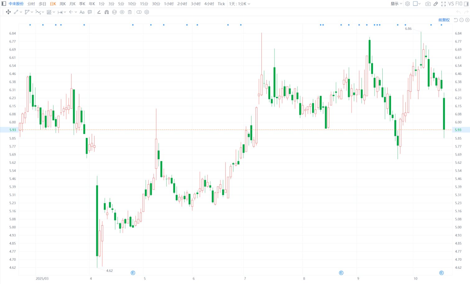 中来股份(300393.SZ)今日低开低走,现跌6.17%报5.93元,股价创9月25日以来约一个月新低;全天成交3.46亿元,最新市值64.6亿元。中来股份公布三季度报告,前三季营业收入38.98亿元,同比下降14.21%;净亏损3.98亿元,扣非净亏损4.2亿元,基本每股收益-0.3653元。(格隆汇)