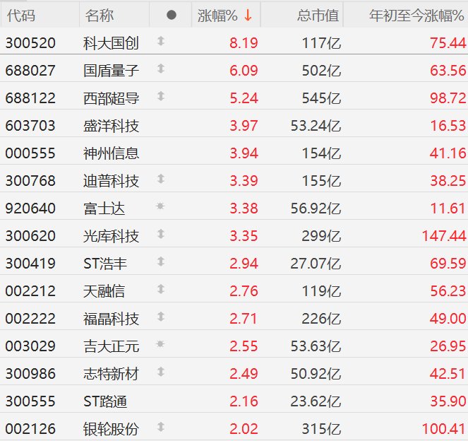 国泰海通证券研报表示,量子计算已成为最具颠覆性的前沿技术之一,根据IBM和中国信通院报告来看,量子计算目前还处于早期技术攻关阶段,预计未来5到10年有可能出现实质性进展。量子安全在应用领域还处于起步阶段,但未来的发展空间很大。中国在QKD量子安全领域处于领先地位,已经形成了以QKD技术为核心的较为完整的量子保密通信产业链。量子测量产业当前则已进入多元化发展周期。