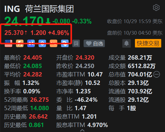 美股异动丨荷兰国际盘前涨5%,Q3销售额、每股收益均超预期