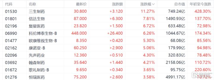 生物医药、创新药股逆市大涨,三生制药涨超11%,信达生物涨超7%,复星医药涨超6%,先声药业。翰森药业涨超4%。消息面上,10月30日,2025年国家医保目录谈判工作在京启动,今年首次增加商业健康保险创新药目录。信达证券认为,医药行业整体呈现边际改善趋势,市场风格有望切换至有业绩支撑的高景气赛道,建议关注Q3业绩有望超预期个股、CXO及生命科学上游产业链、医疗器械需求复苏、创新药等细分方向。