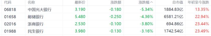 大金融走低,银行、保险、券商全线下跌。光大证券、华泰证券、中国光大银行、中国太保等跌超5%,广发证券、中信证券跌超3%。