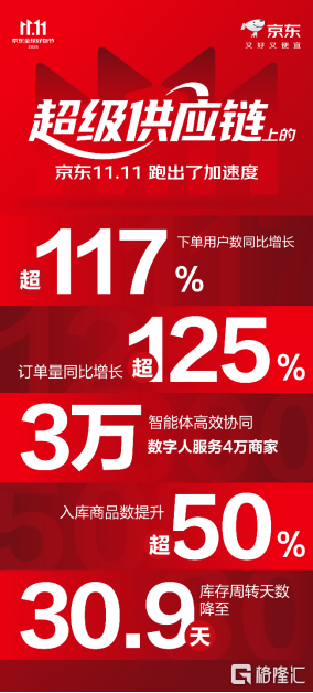 更丰富的商品、更高的运营效率、更快的销售增长,“超级供应链”上的京东11.11跑出了加速度。“超级供应链”有助于破除当前行业内卷的顽疾和增长的瓶颈,让商家不再为流量付出高昂的代价,是提升供应链韧性的重大创新,是共生共享商业价值重塑和提升的重大创新,更是服务中国实体经济的重大创新。