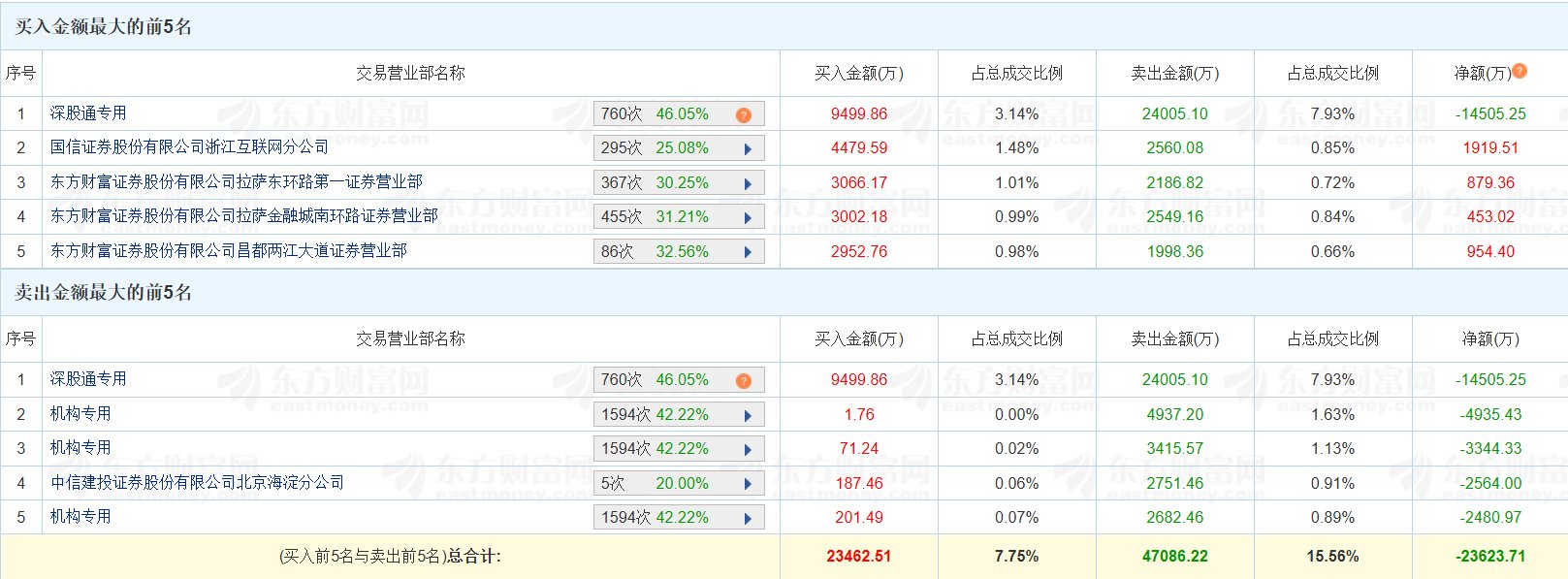 凯美特气(002549.SZ)今日跌停,换手率17.62%,成交额30.27亿元。龙虎榜数据显示,深股通买入9500万元,卖出2.4亿元,净卖出1.45亿元;三家机构买入274万元,卖出1.1亿元,净卖出1.08亿元。上榜席位全天买入2.35亿元,卖出4.71亿元,合计净卖出2.36亿元。(格隆汇)