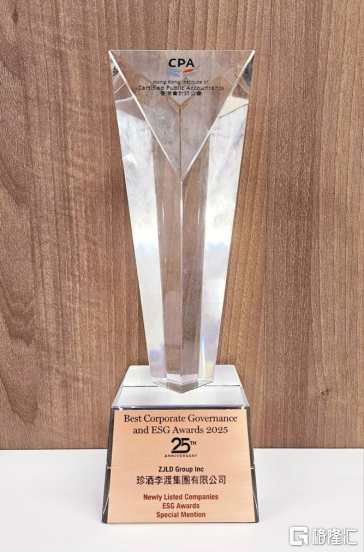 近日,香港会计师公会(HKICPA)举办2025年度"最佳企业管治及ESG大奖"颁奖典礼,珍酒李渡凭借在ESG实践方面突出表现,荣获"ESG特别嘉许奖"。