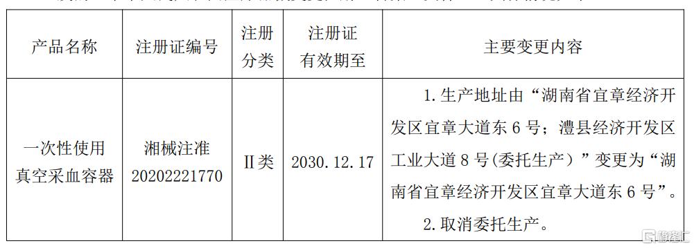 格隆汇11月5日丨阳普医疗(300030.SZ)公布,全资子公司阳普医疗(湖南)有限公司(简称“湖南阳普”)收到由湖南省药品监督管理局核发的《中华人民共和国医疗器械变更注册(备案)文件》,取消一次性使用真空采血容器的委托生产,有利于湖南阳普进一步加强相关产品的管理,保障质量,对公司未来发展有积极影响。