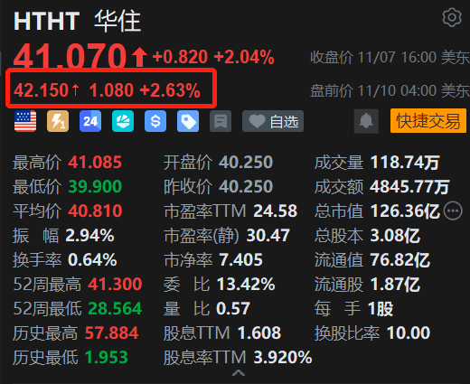 港股华住今日收涨5.56%刷新阶段新高,带动华住(HTHT.US)美股盘前涨2.6%。消息上,摩根士丹利日前研究报告指,第三季酒店行业的每间可售房收入(RevPAR)跌幅收窄,主要受9月表现优于预期所带动;而9月的积极势头已延续至10月,并可能持续至第四季。该行预期华住集团及亚朵的第三季业绩将好过预期,当中亚朵的零售业务增长可能有惊喜,而华住则有望展现正面的RevPAR趋势及营运杠杆效益。将华住美股目标价由43.5美元调升至47美元,评级“增持”。(格隆汇)
