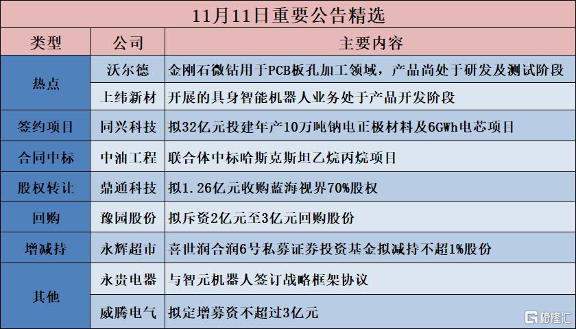 格隆汇公告精选︱同兴科技:拟32亿元投建年产10万吨钠电正极材料及6GWh电芯项目;沃尔德:金刚石微钻用于PCB板孔加工领域,产品尚处于研发及测试阶段