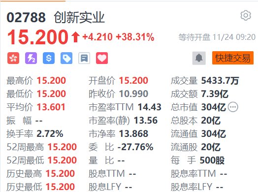 创新实业(2788.HK)今日首日在港挂牌上市,高开38.31%,报15.2港元。该股此次IPO定价10.99港元/股,公开发售获447.20倍认购,国际配售获19.85倍认购。创新实业聚焦于铝产业链上游中的氧化铝精炼和电解铝冶炼。