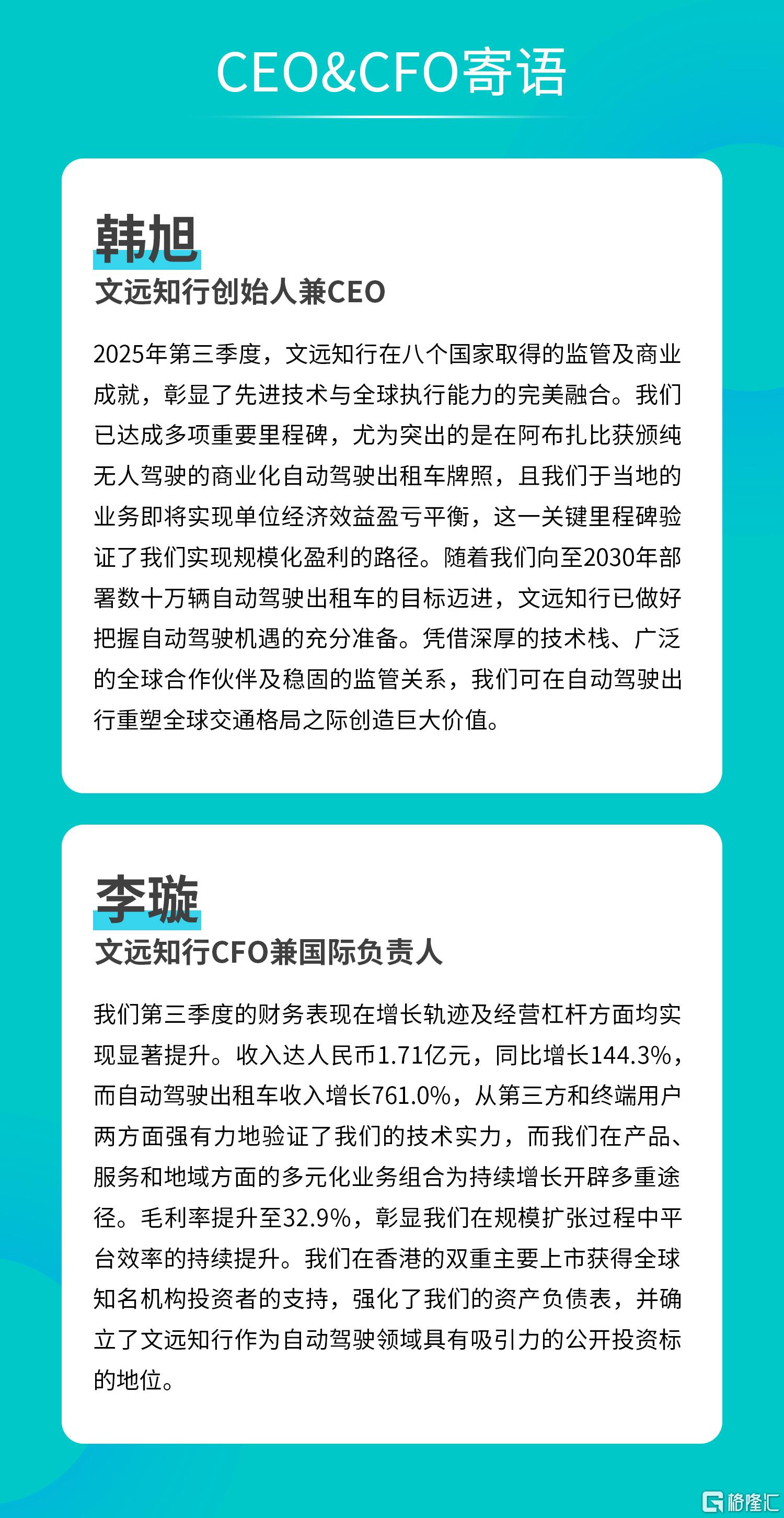 11月24日,全球领先的自动驾驶科技公司文远知行WeRide(NASDAQ: WRD,HKEX: 0800)发布2025年第三季度财报。