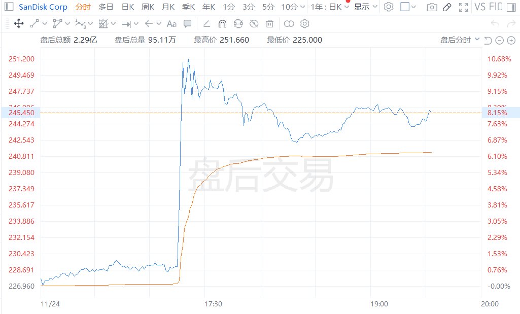 标普道琼斯指数公司周一晚间表示,闪迪(Sandisk Corp.)将于周五被纳入标普500指数。消息公布后,闪迪(SNDK.US)在盘后交易中一度上涨超10%。该公司将从标普小型股600指数调入标普500指数,取代广告和营销公司Interpublic Group of Companies Inc.。该指数的调整将于周五开盘时生效,周五美国股市将因感恩节假期而缩短交易时间。截至周一,闪迪的市值约为340亿美元,因其市值远超其他成分股,在该小型股指数中显得格格不入。