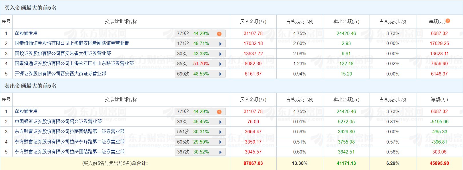 光库科技(300620.SZ)今日20CM涨停,股价创历史新高,换手率19.11%,成交额65.45亿元。龙虎榜数据显示,深股通买入3.11亿元,卖出2.44亿元,净买入6687万元;游资“中山东路”位列买四席位,净买入7960万元;“量化打板”位列买五席位,净买入6146万元;“流沙河”位列卖二席位,净卖出5196万元。上榜席位全天买入8.71亿元,卖出4.12亿元,合计净买入4.59亿元。(格隆汇)