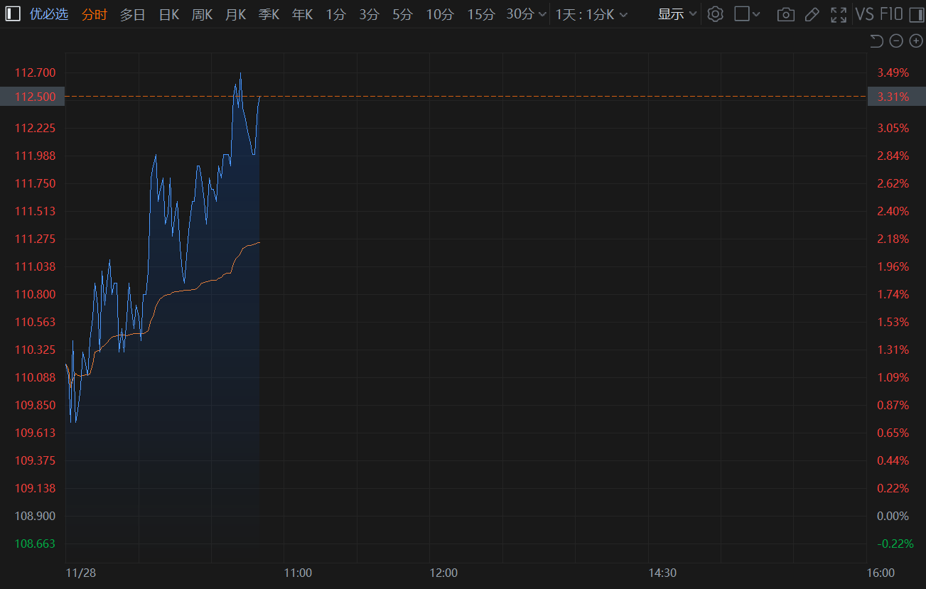 “人形机器人第一股”优必选(9880.HK)今日高开,盘中拉升涨约4%,现报112.4港元,总市值531亿港元。消息上,据悉,优必选11月28日中标江西九江市人形机器人数据采集与训练中心项目,中标金额为1.43亿元。该项目将采用优必选最新款可自主换电的工业人形机器人Walker S2。截至目前,优必选Walker系列人形机器人2025年全年订单总金额已达到13亿元。