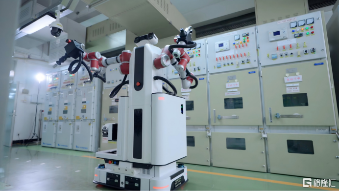 位于南方电网广东广州供电局的一座220千伏变电站高压室内,全球首台双臂协作巡操机器人"钧仪"正在进行高危环境下的巡检操作,通过高精度的双臂协作多线程并行作业,完成开关柜巡检、按钮操作、手柄切换等复杂任务,实现稳定高效的无人化巡检操作。