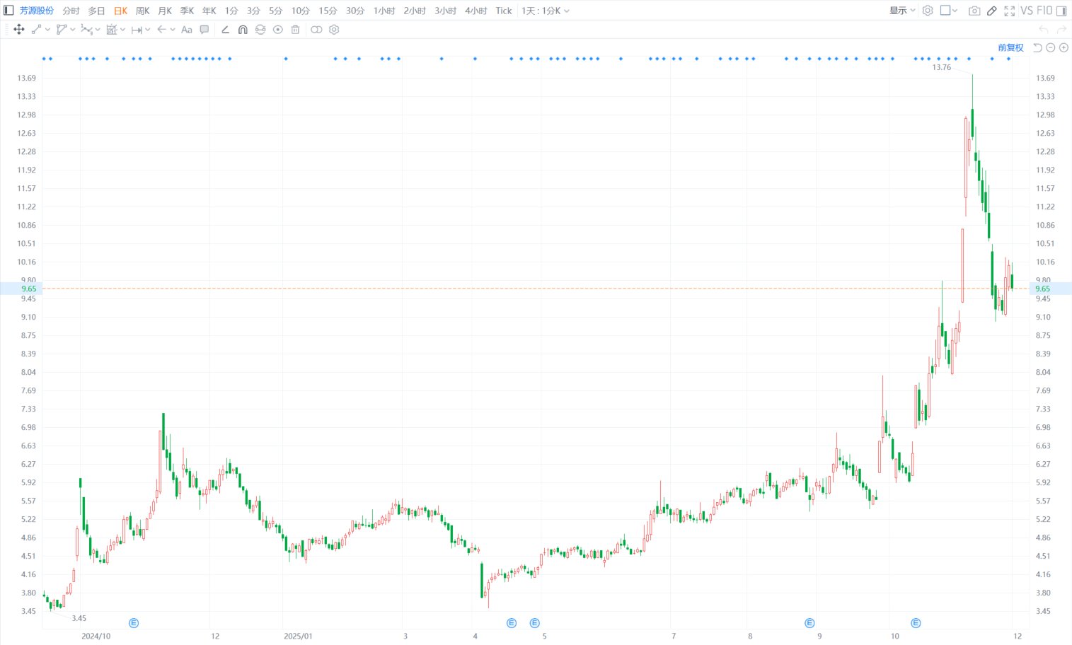 芳源股份(688148.SH)现跌4.46%报9.64元,暂成交3.8亿元,最新市值49亿元。芳源股份公告称,股东平方亿利系公司员工持股平台,为控股股东、实控人一致行动人,截至公告披露日,其持有公司股份950.27万股,占总股本1.86%。平方亿利计划通过集中竞价减持不超510万股,即不超总股本1%,减持时间为2025年12月20日至2026年3月19日,原因为自身资金需要。(格隆汇)